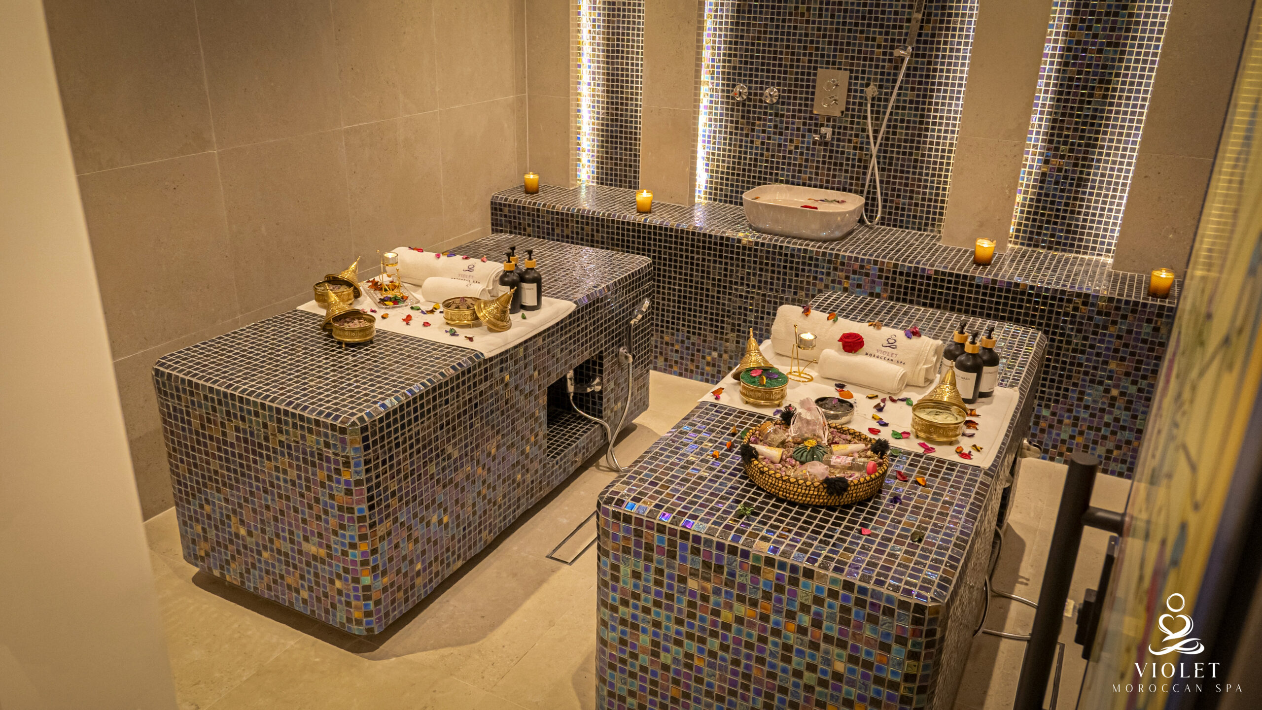 At Violet Spa, every ritual is a journey — a sensory voyage inspired by Morocco’s royal traditions of beauty and wellness. From the shimmering hammam tiles to the warm argan oil massages, each detail is crafted to restore balance and serenity.